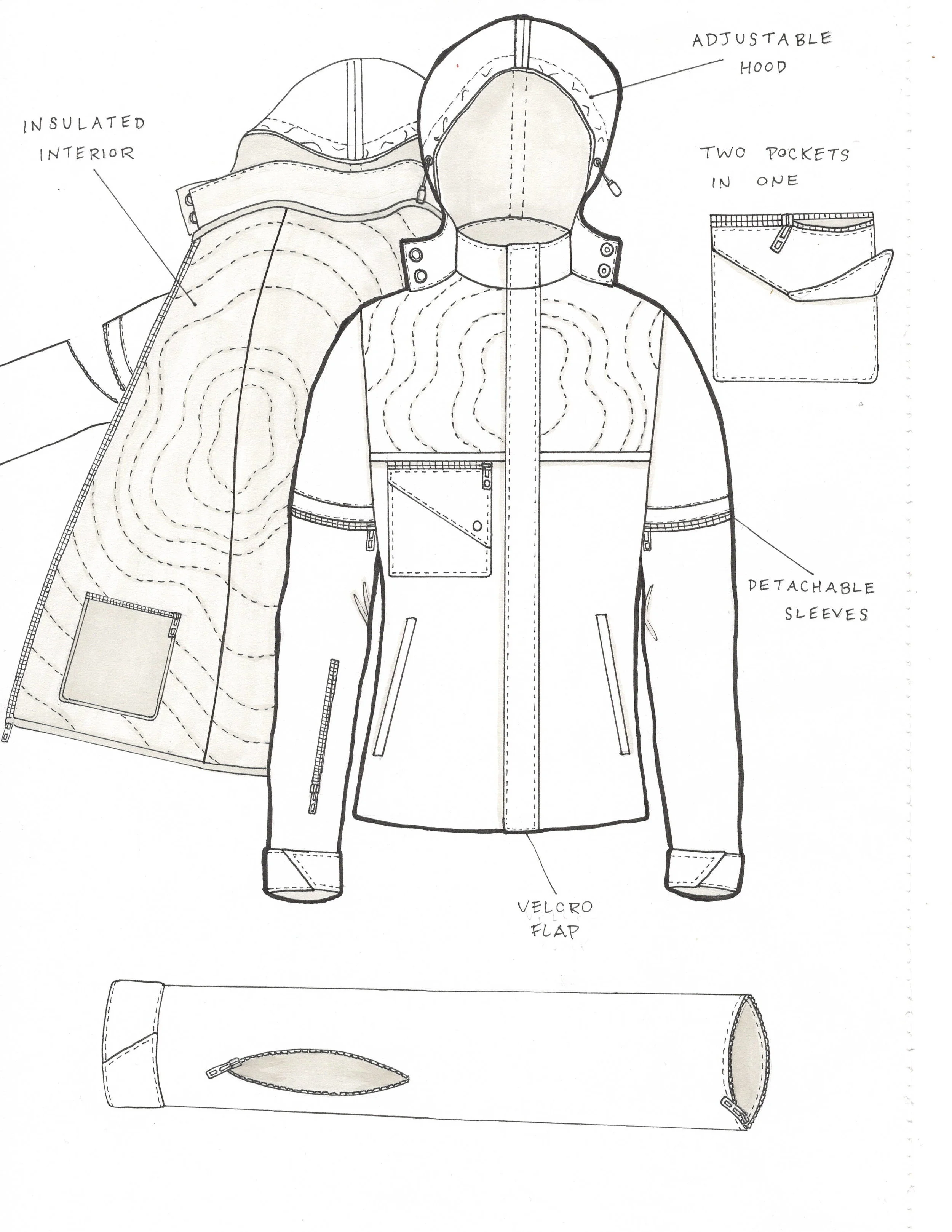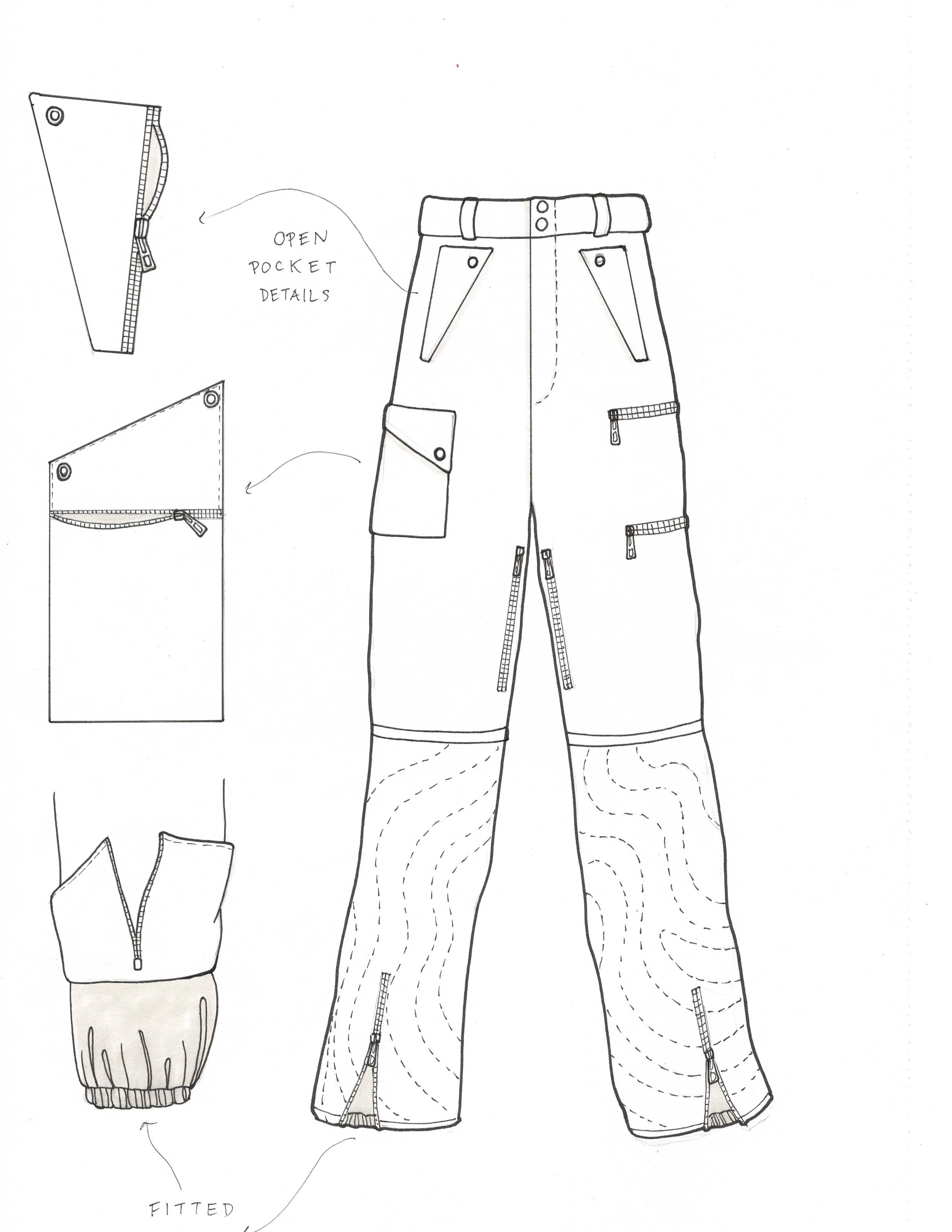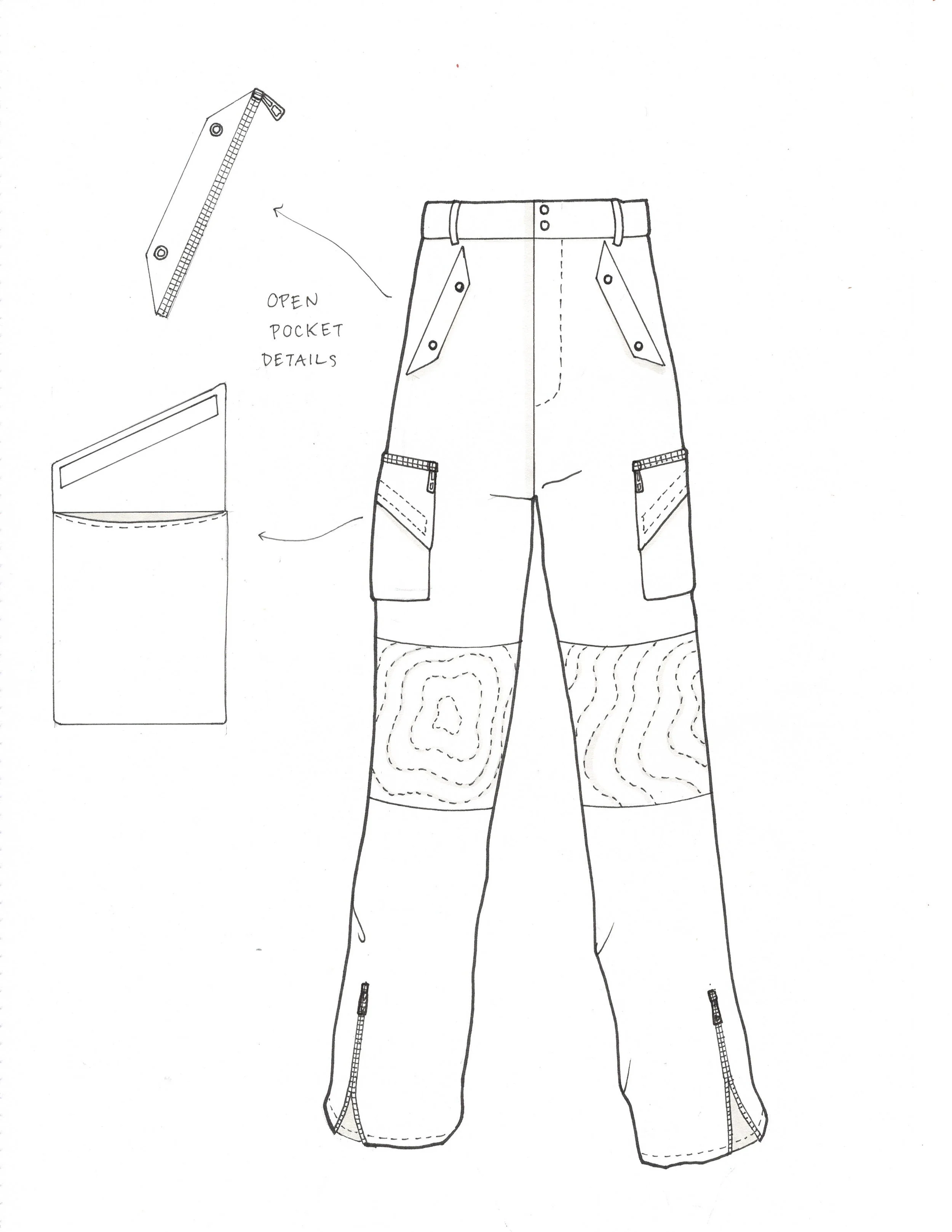 Technical sketching, whether by hand or digitally, is a skill I developed throughout my undergraduate career. Typically, I create technical sketches using Adobe Illustrator, but I have also completed projects that required tedious hand-rendering of technical flats. Below, you can find a sampling of my technical drawings.